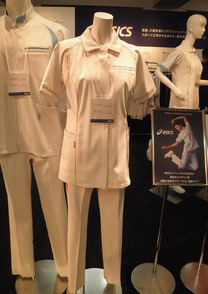 ...2つのボタンが印象的な医療用ユニフォーム