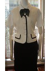 爽やかで知的なネイビー&白のコントラストがジオメタリックなドットボーダーと響き合って新鮮で大人な雰囲気を醸し出す事務服です。