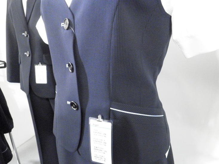 立体裁断でくびれメイク。ストライプ柄のベストスタイル事務服です。