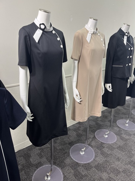 花をイメージした襟が特徴的な「MARY QUANT」デザインの受付制服